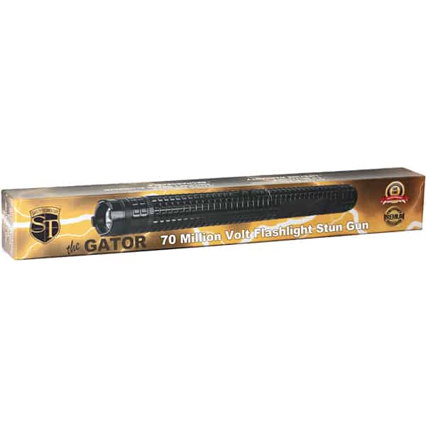 The Gator serves as a stun gun, flashlight, and a striking weapon all in a single unit. The Gator has a bright 180 lumen flashlight with 3 light modes. When blinding an attacker isn’t enough, the Gator dishes out a whopping 70 million volts shock. Because of its aircraft aluminum construction and 13-inch length, the Gator can also be used as a defensive. The textured handle ensures you keep a firm grip with each swing. No need to worry about having to invest in batteries. It comes with 2 lithium rechargeable batteries and a wall charger. It also comes with a nylon holster that goes on your belt.