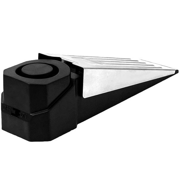 Affordable protection! Easy setup! Instant security! Stop intruders in their tracks with the powerful DOOR STOP ALARM – a must-have travel and home security device. This compact door wedge blocks entry and sounds a 120dB alarm if pressure is applied, instantly alerting you to unauthorized access. Perfect for homes, apartments, RVs, and hotel rooms. It’s lightweight, easy to pack, and provides peace of mind wherever you go. Get one for every door! The movement sensor will activate the alarm if it’s tampered with. On/off switch is on the back of the alarm and includes a low battery indicator light. Uses one 9-volt battery (not included). Measurements 6 3/8″ x 1 3/4″