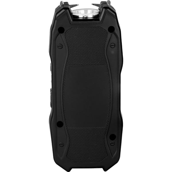 This uniquely designed stun gun is equipped with an LED flashlight, battery meter, safety switch and an illuminated red light that tells you it’s ready to unleash pain on your attacker. The built-in rechargeable battery is charged using the included USB cable.