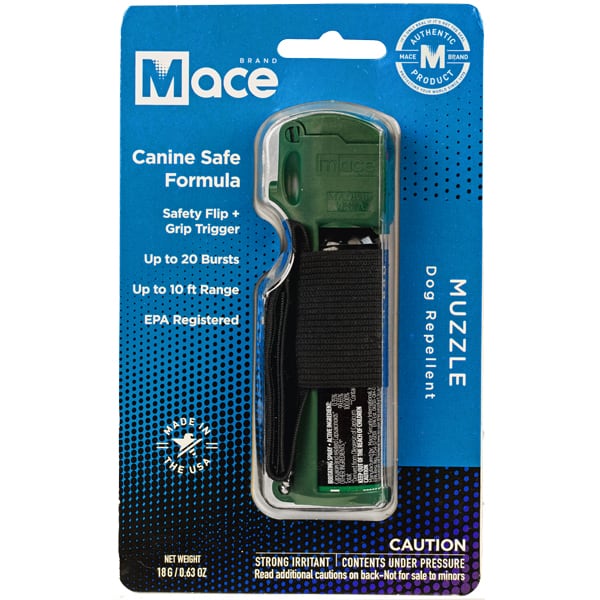 EPA approved Mace® Muzzle provides safe, effective and humane protection against canine attack. Ideal protection for walkers, joggers, cyclists or delivery people.
