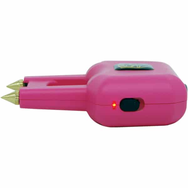The Spike stun gun has two sharp spikes. It was designed this way so it could double as a striking self defense tool. You would aim for the eyes or throat. The SPIKE stun gun comes with a rubberized coating, providing a comfortable non-slip grip. Resting discreetly in your hand, the triggering button activated by your palm. The Spike discharges loudly, easily able to dissuade a confrontation before it starts.
