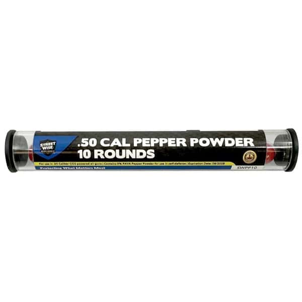 .50 caliber PAVA pepper ball projectiles designed specifically for the Streetwise Heat Pistol Pepper launcher. Each round contains 5% PAVA (Pelargonic Acid Vanillylamide) pepper powder, delivering a powerful irritant effect upon impact.