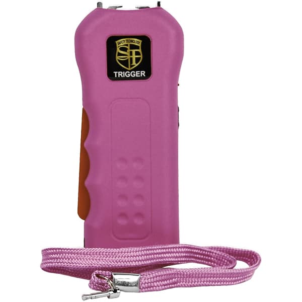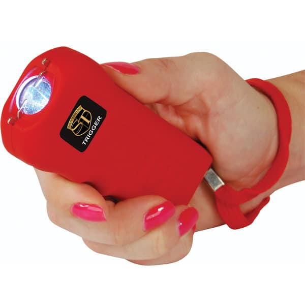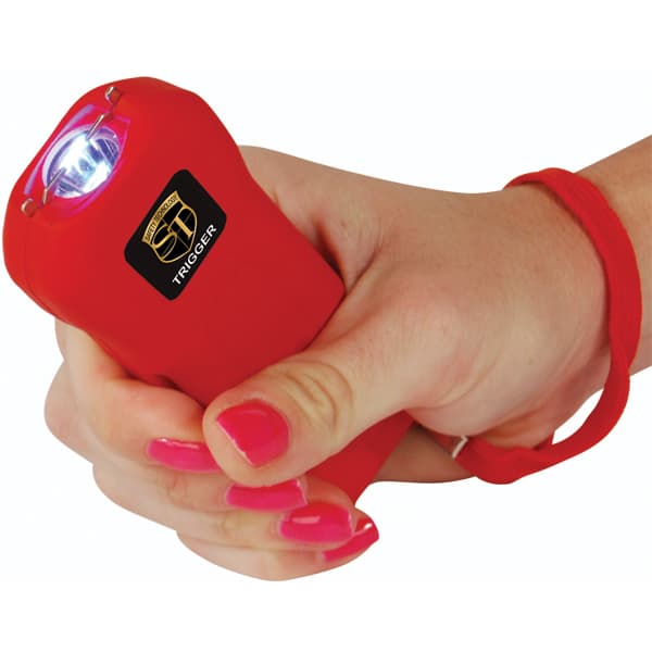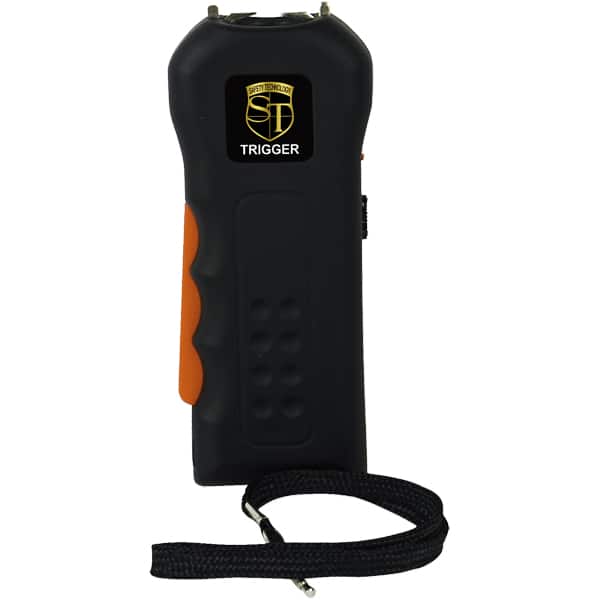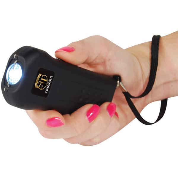 The Trigger 75,000,000 volt stun gun flashlight with wrist strap disable pin has a unique trigger design for easy operation and lifetime warranty. With a quick pull of the trigger you can have an attacker begging for mercy. It has a rubberized coating to ensure a nice, tight grip. The super bright flashlight will blind any attacker or it can be used as an everyday flashlight.